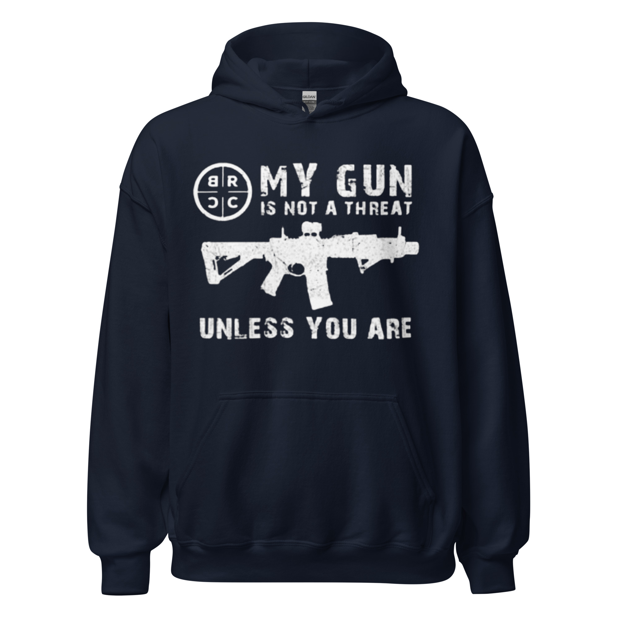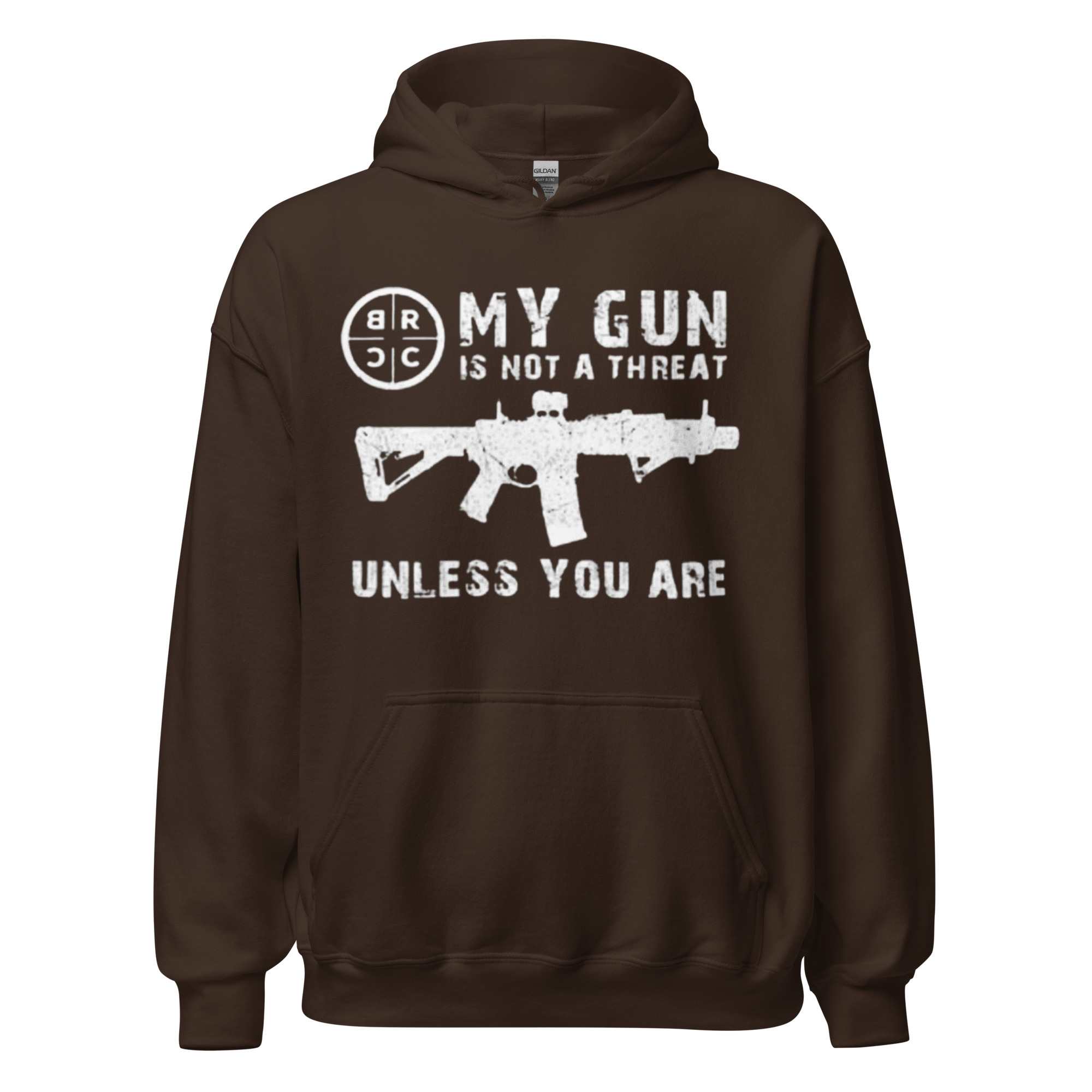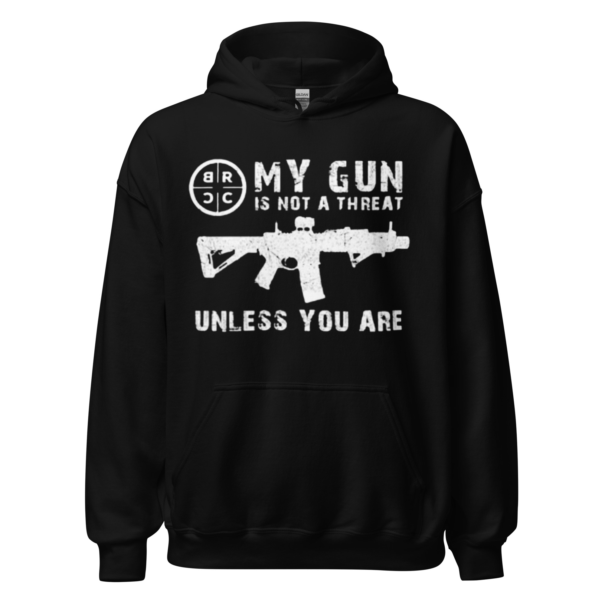 Make a bold statement with the “My Gun is Not a Threat Unless You Are On It” Hoodie by Addicted City. This black hoodie features a powerful graphic of an AR-15 rifle alongside the statement “My Gun is Not a Threat Unless You Are On It”, emphasizing self-defense and personal protection. Crafted from a soft, high-quality cotton blend, it provides comfort and warmth for all-day wear. With a classic fit, adjustable hood, and front pocket, this hoodie is perfect for those who want to express their stance on firearms with style and confidence.