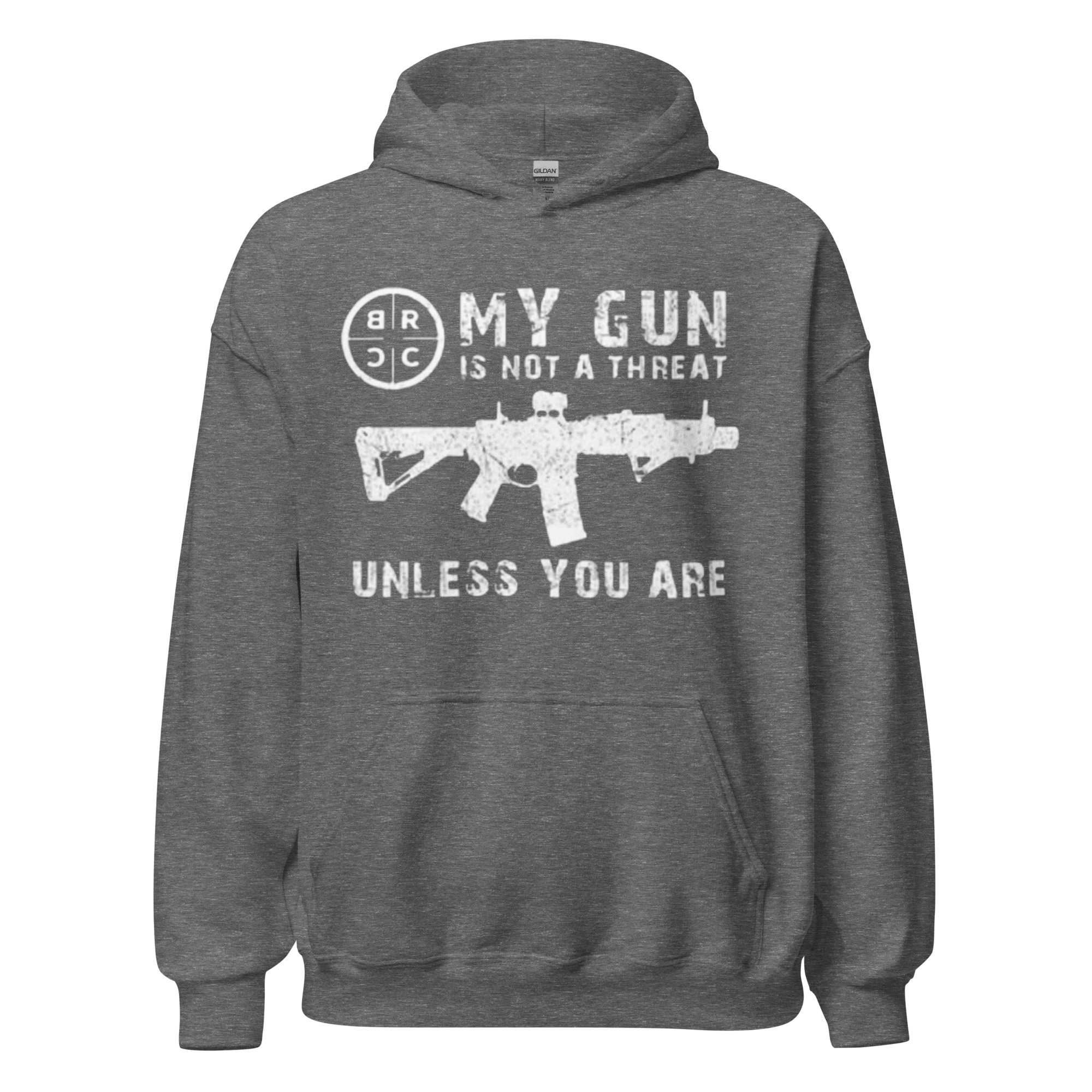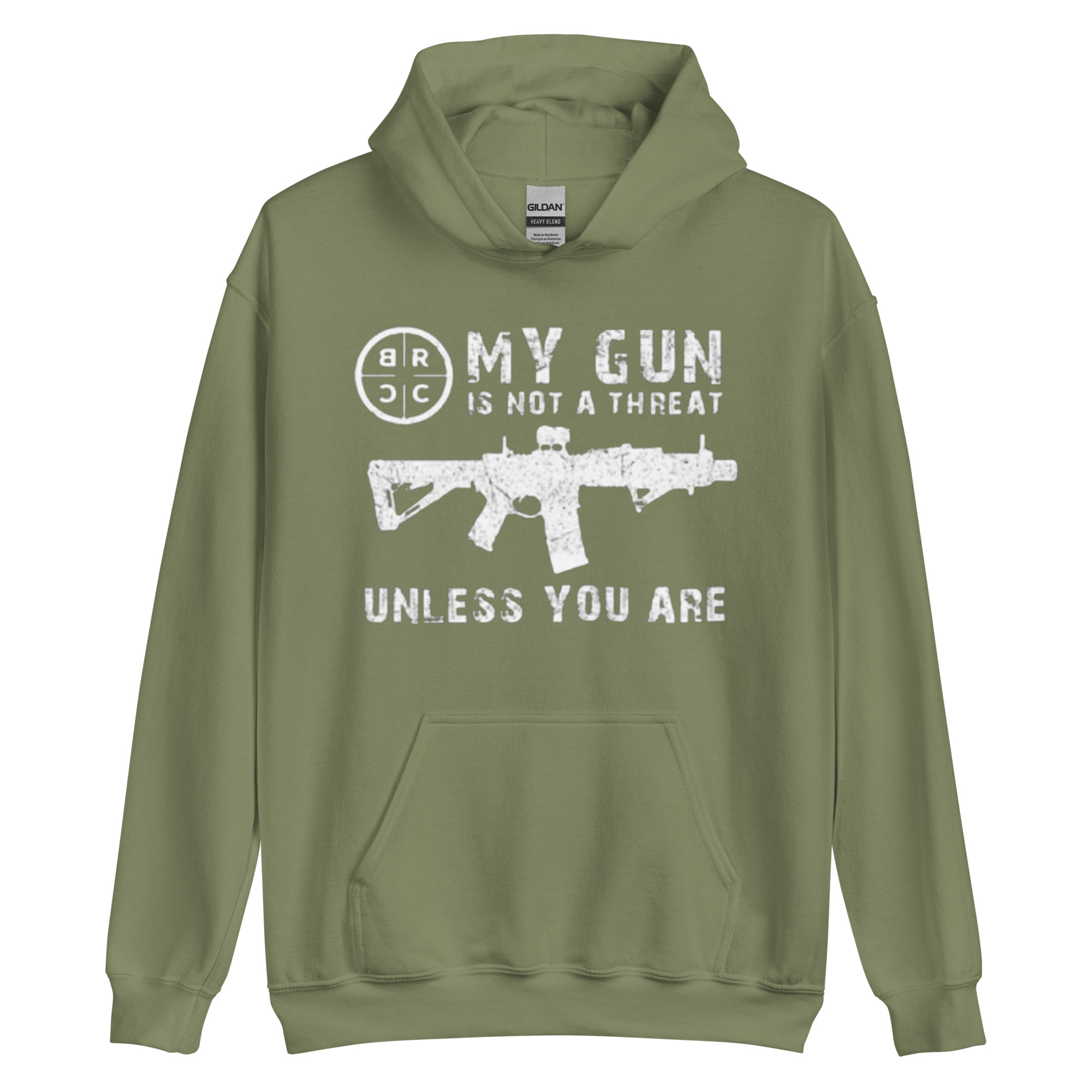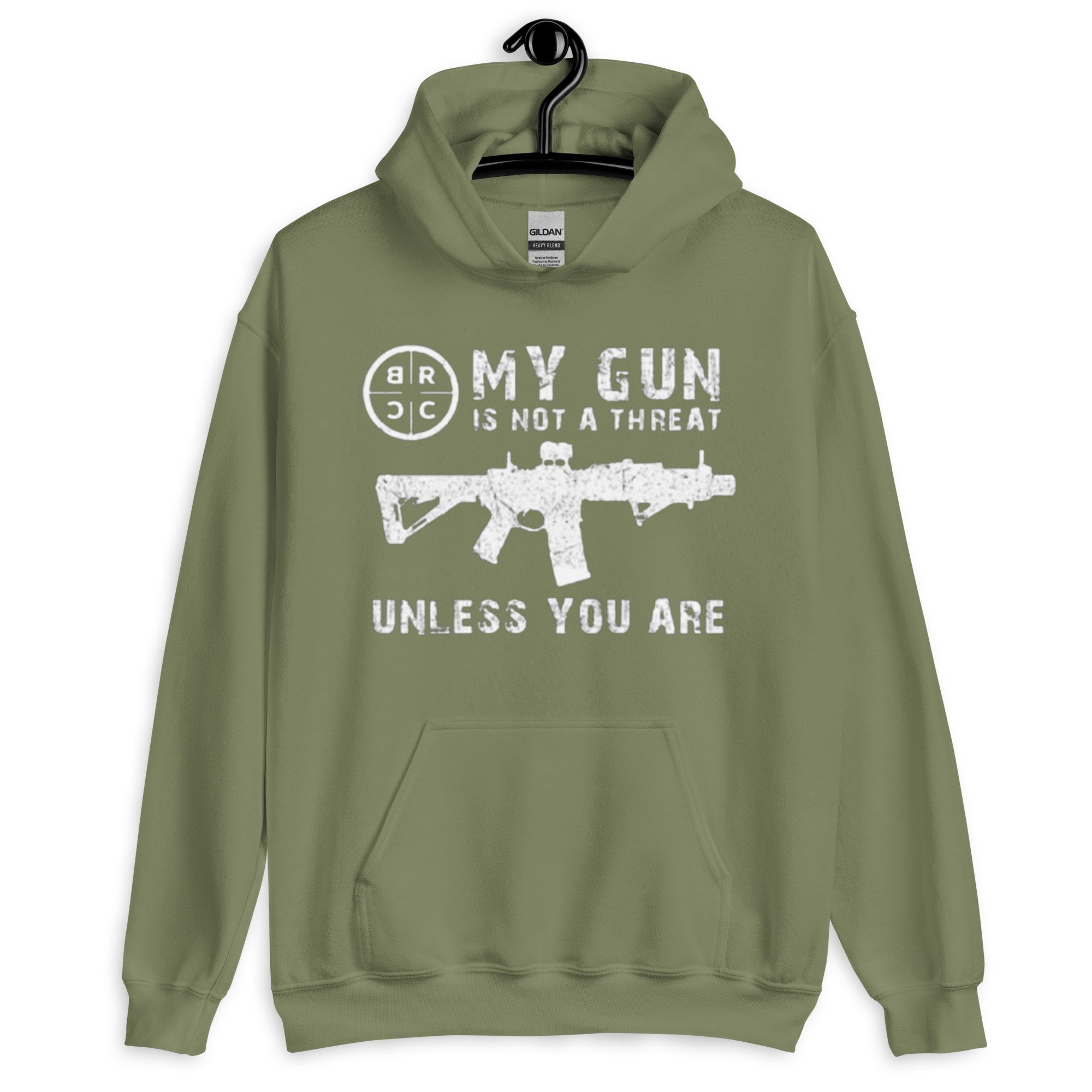 Make a bold statement with the “My Gun is Not a Threat Unless You Are On It” Hoodie by Addicted City. This black hoodie features a powerful graphic of an AR-15 rifle alongside the statement “My Gun is Not a Threat Unless You Are On It”, emphasizing self-defense and personal protection. Crafted from a soft, high-quality cotton blend, it provides comfort and warmth for all-day wear. With a classic fit, adjustable hood, and front pocket, this hoodie is perfect for those who want to express their stance on firearms with style and confidence.