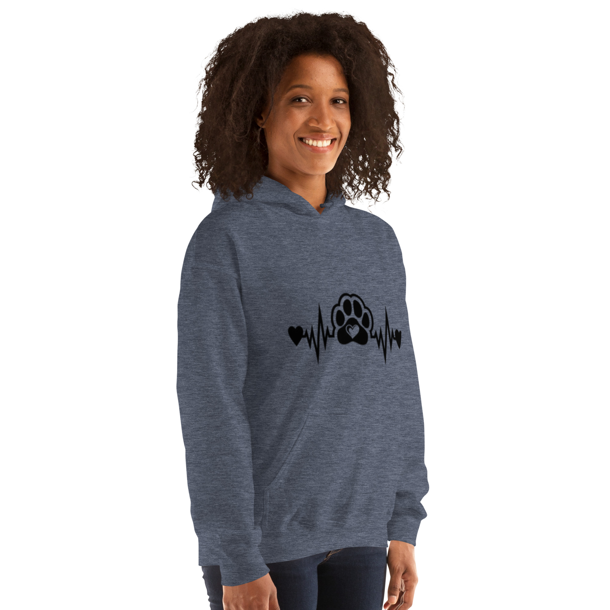 Keywords: Addicted City, heartbeat dog hoodie, dog paw print hoodie, graphic hoodie, dog lover apparel, cozy hoodie, unique hoodie design, comfortable hoodie.