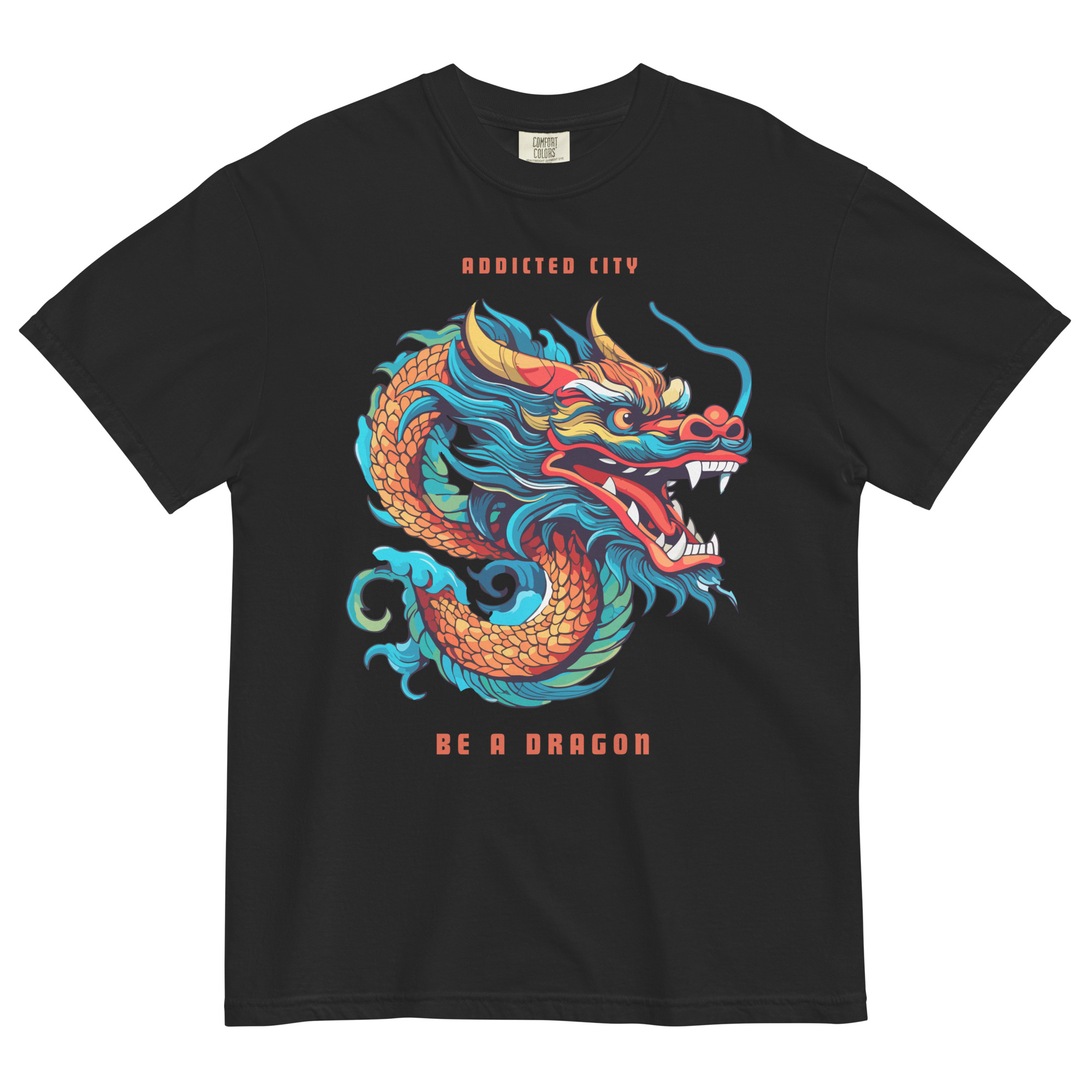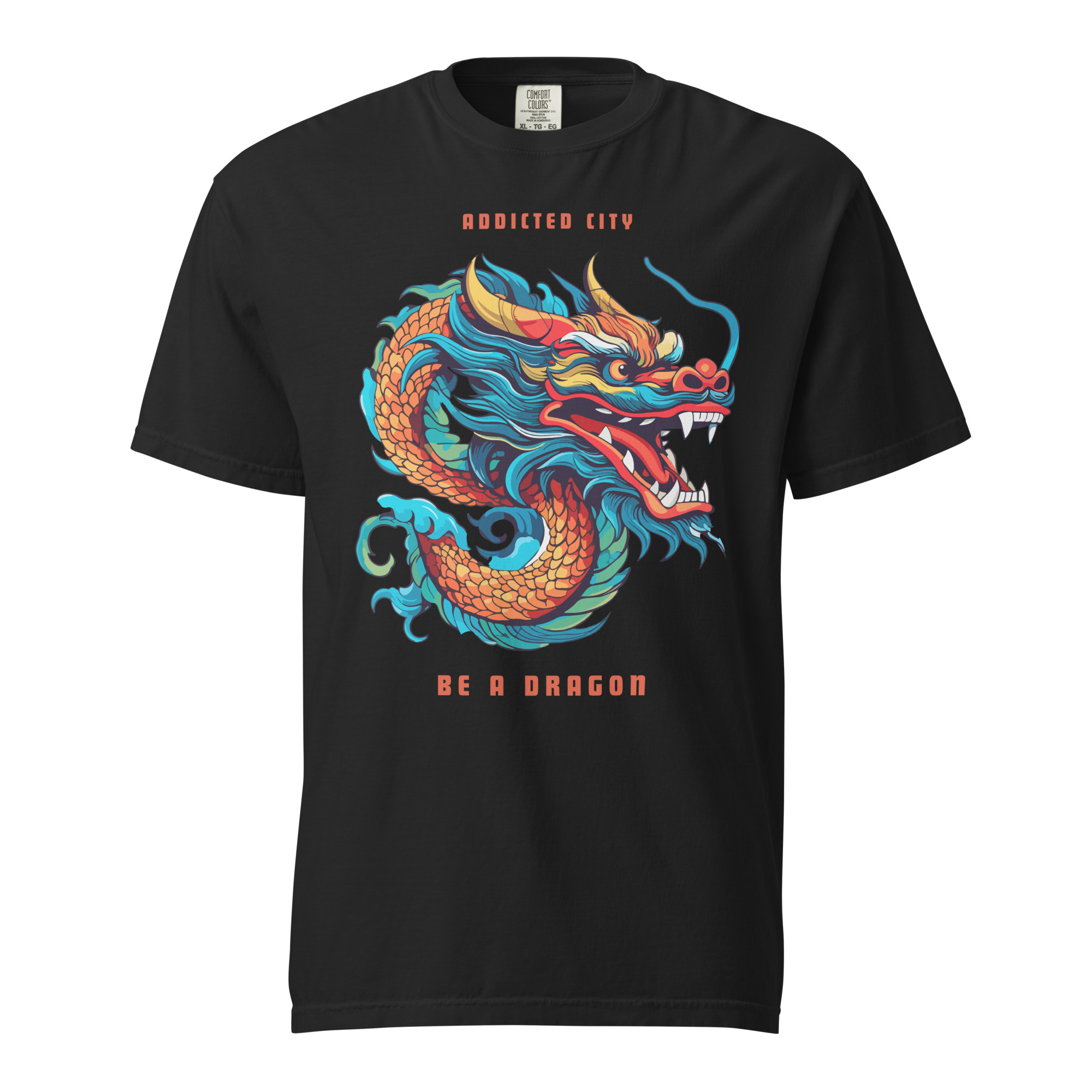 colorful dragon t-shirt, dragon graphic tee, vibrant dragon shirt, fantasy art t-shirt, mythical creature t-shirt, unisex dragon shirt, bold design t-shirt, fantasy fashion, unique dragon t-shirt, comfortable graphic tee.