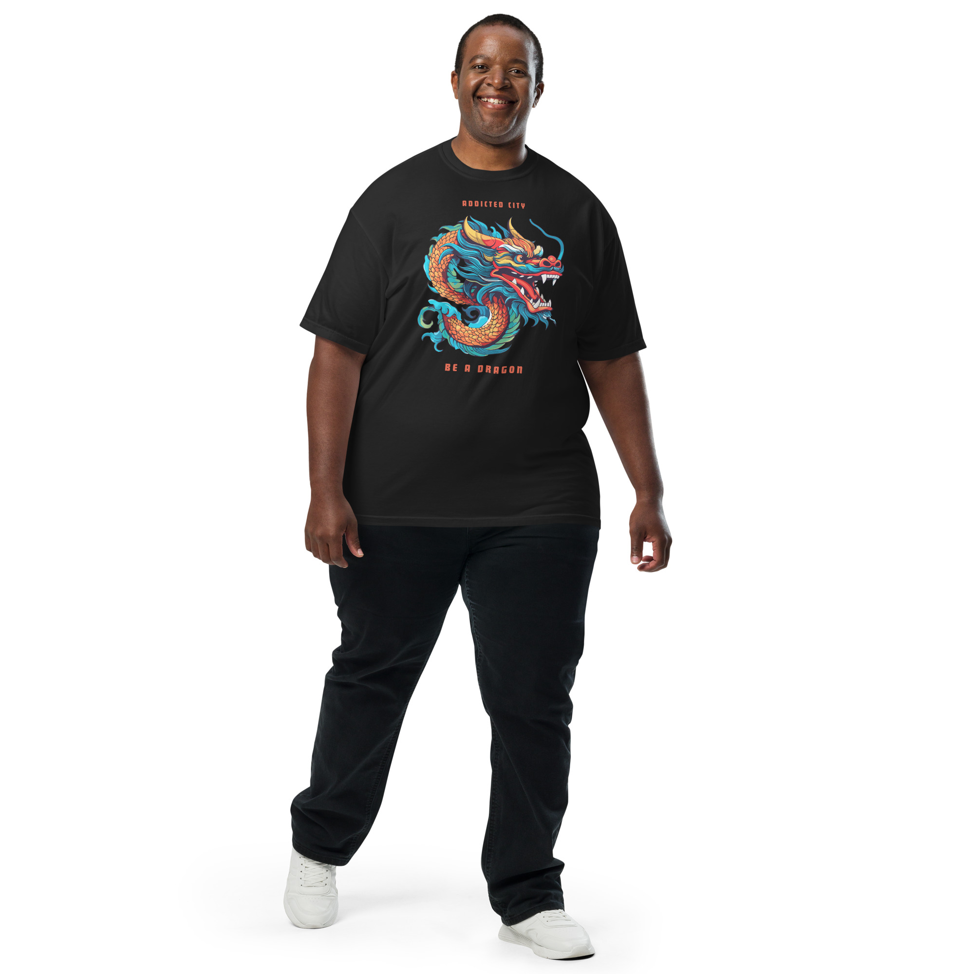 Stunning Dragon Design: The centerpiece of this t-shirt is a meticulously crafted dragon, bursting with dynamic colors, from fiery reds and oranges to cool blues and greens, creating a mesmerizing visual effect.