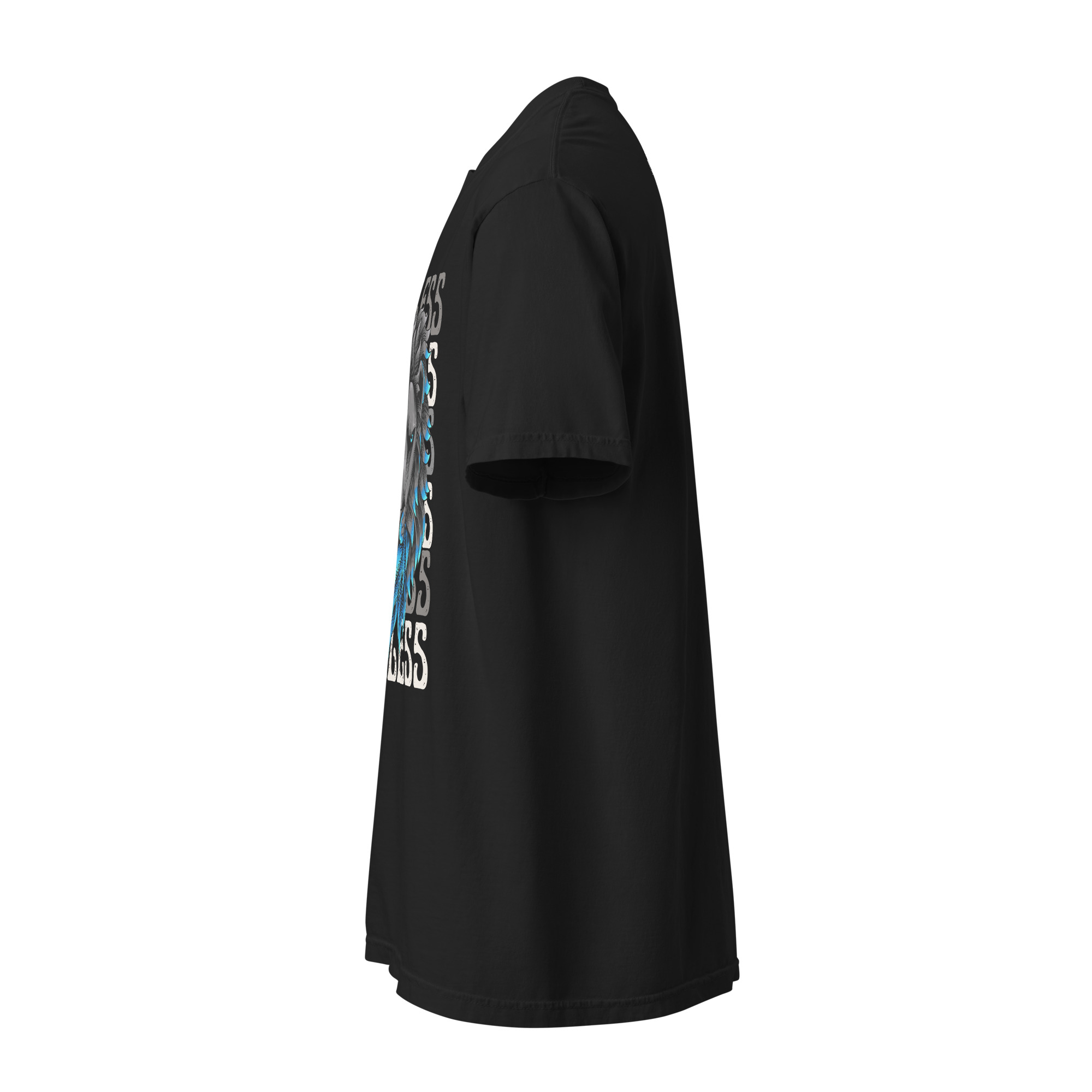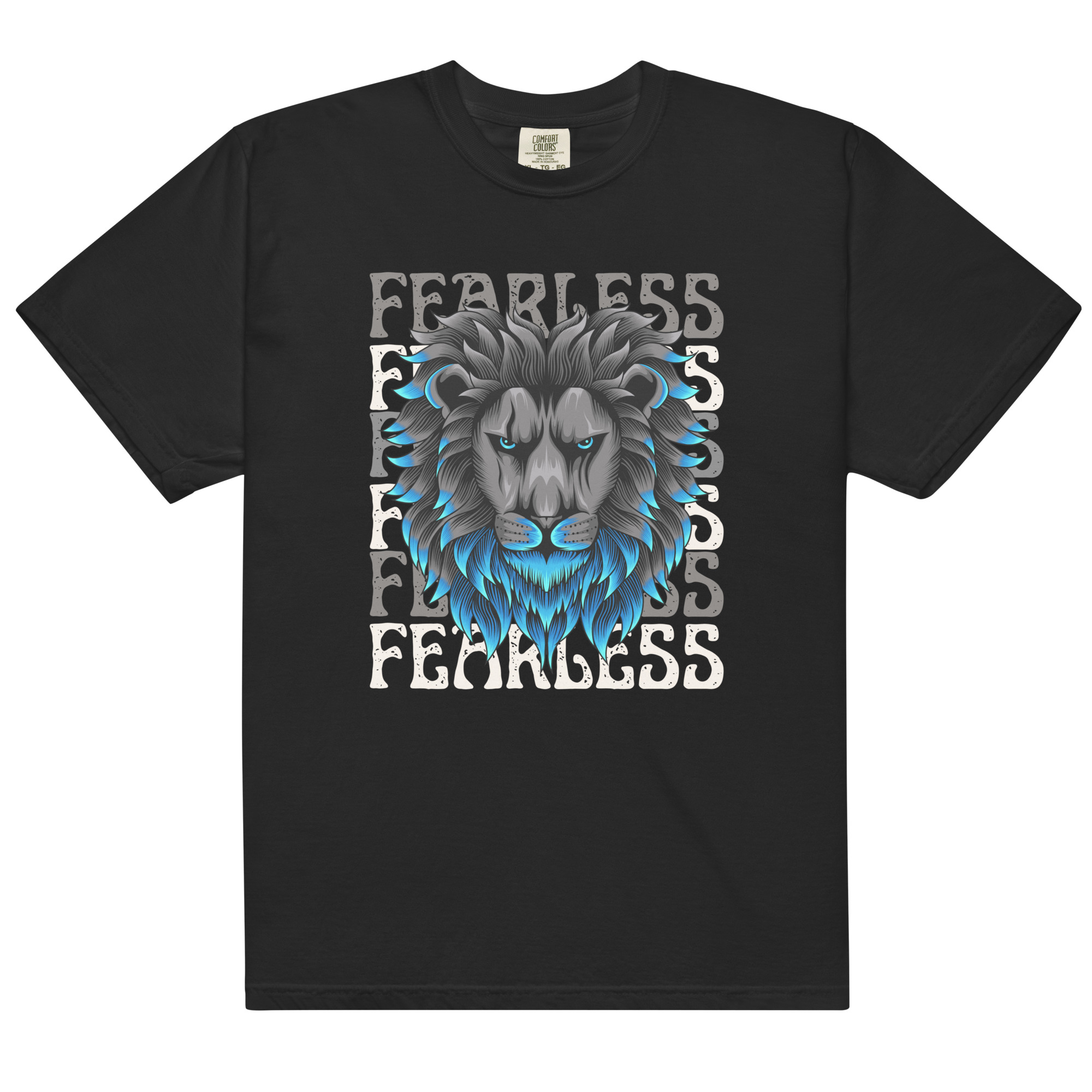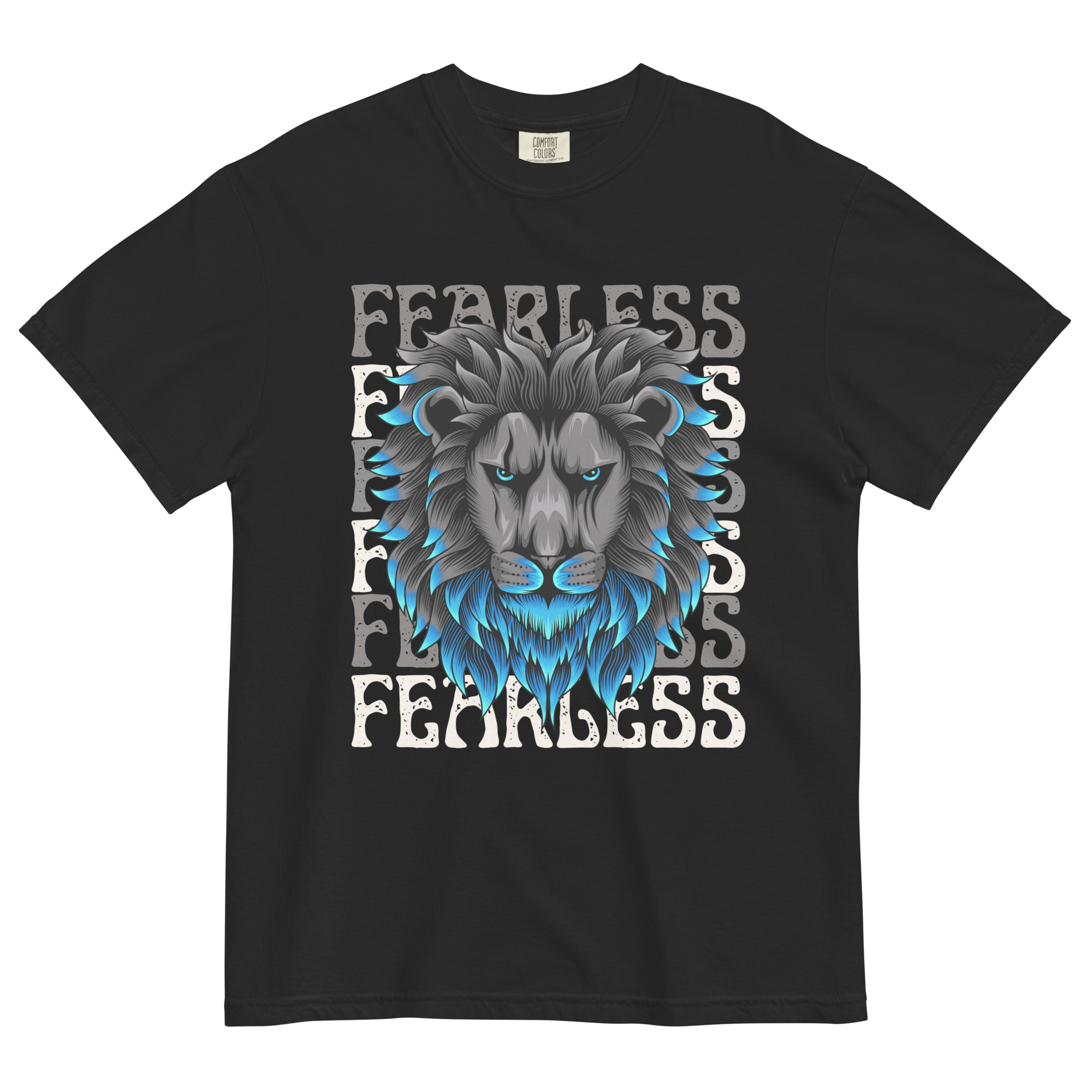 Keywords: Fearless lion graphic t-shirt, lion graphic tee, empowering message t-shirt, bold streetwear, lion print t-shirt, fearless graphic tee, strength and courage shirt, lion symbolism t-shirt, modern streetwear, motivational t-shirt, stylish lion graphic tee, animal print t-shirt, empowering clothing, athletic streetwear, confident graphic shirt.