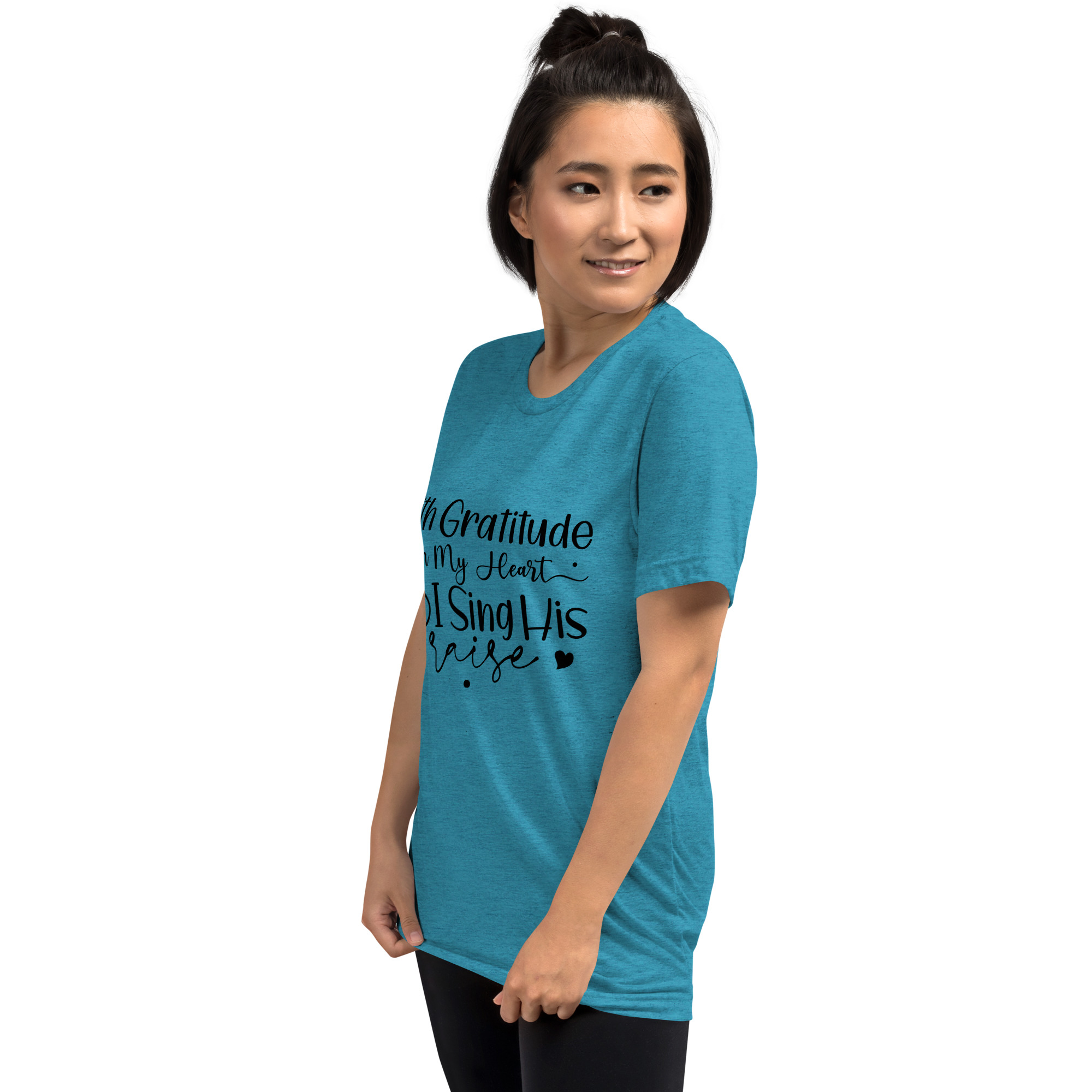 Keywords: With gratitude in my heart shirt, Addicted City apparel, faith-based shirt, Christian graphic tee, inspirational T-shirt, religious shirt, praise shirt, spiritual clothing.