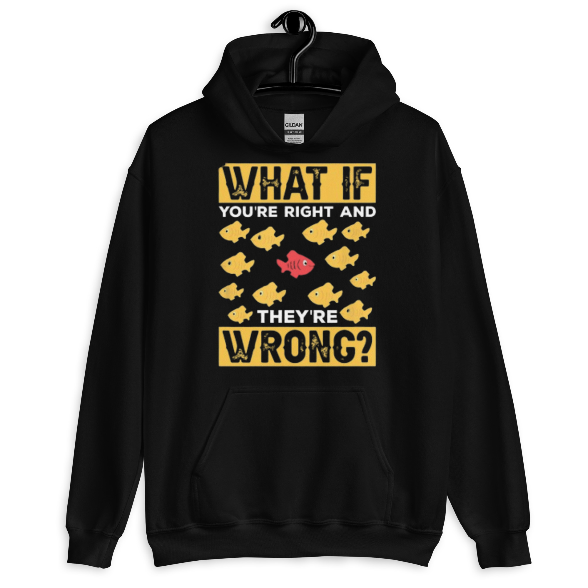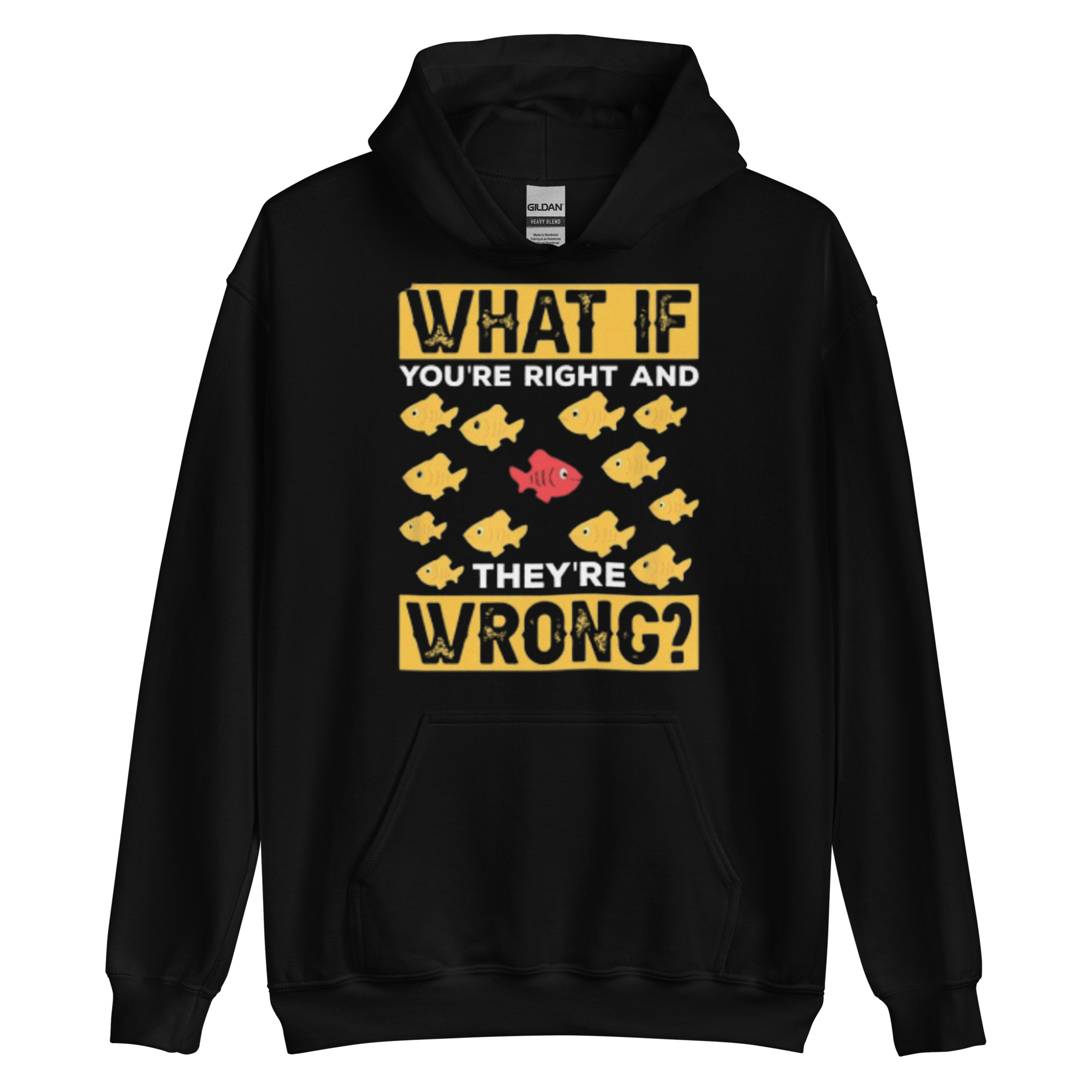 Stand out with the Addicted City Black Hoodie, featuring the thought-provoking phrase “What if you’re right and they are wrong” paired with a unique design of yellow fish swimming left and one red fish swimming to the right. This bold graphic symbolizes individuality and the courage to think differently. Made from soft, high-quality fabric, this hoodie provides both comfort and style. Perfect for those who embrace their unique perspective and aren’t afraid to stand out from the crowd.