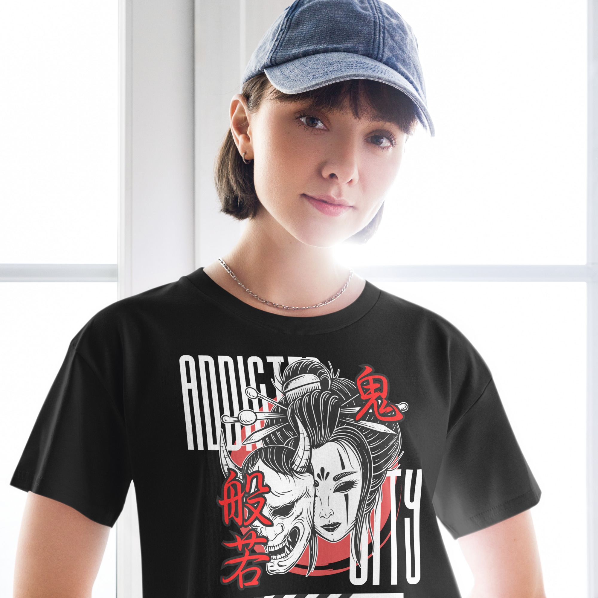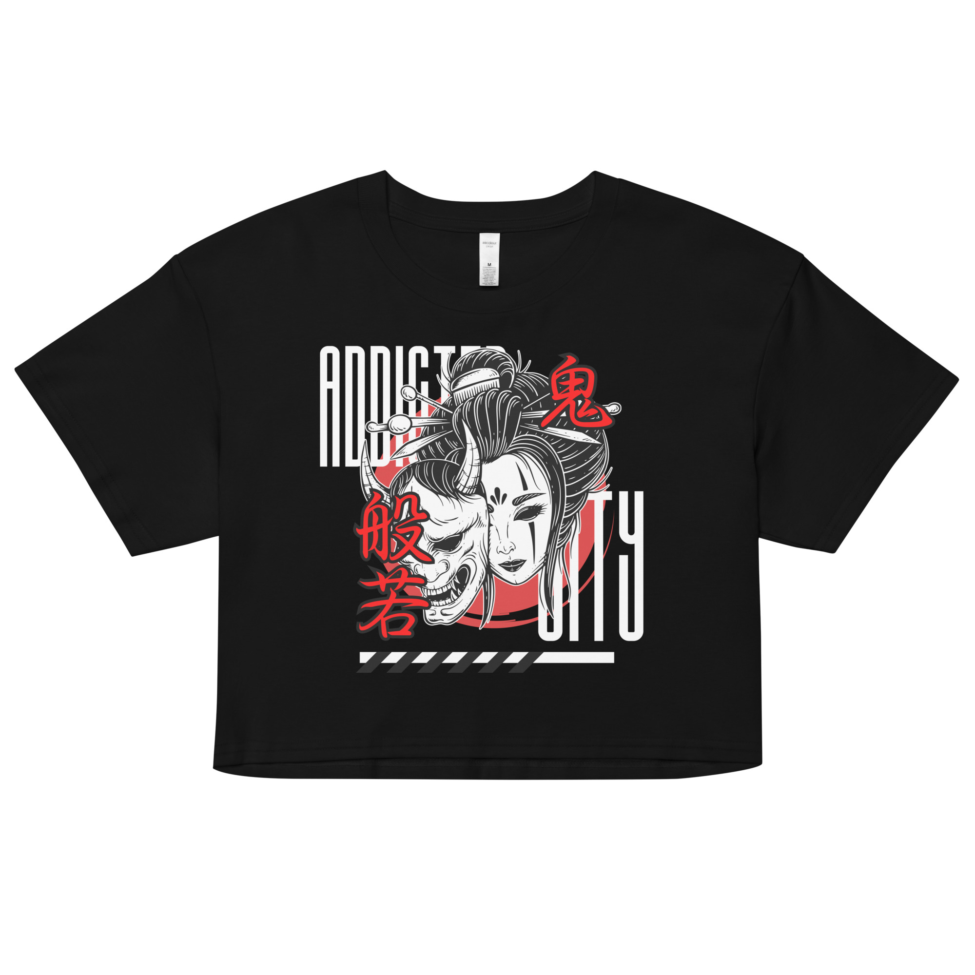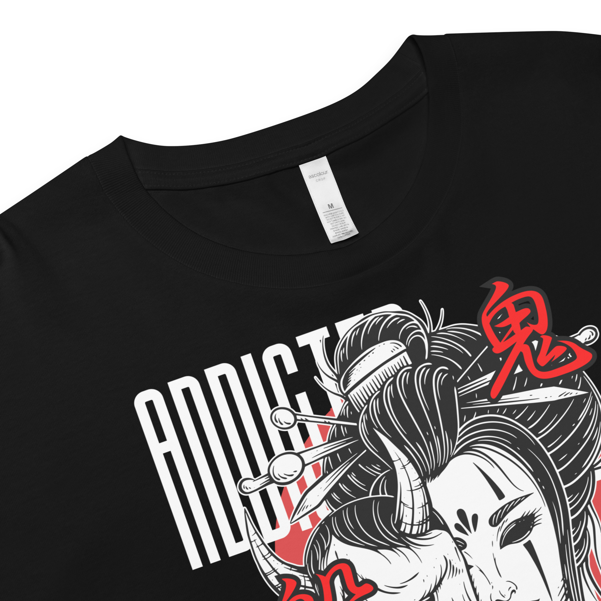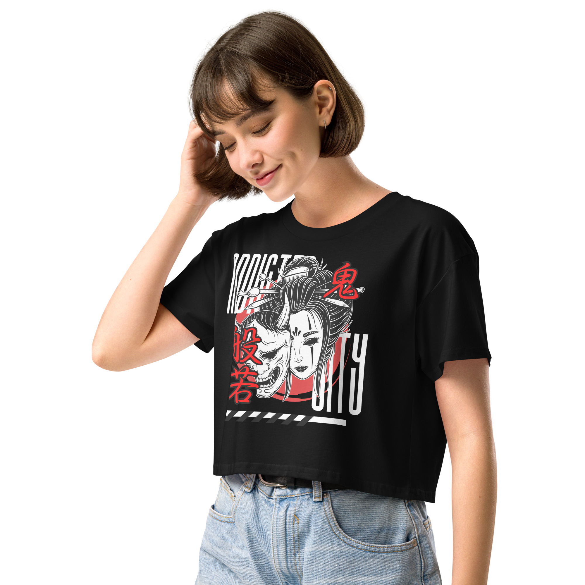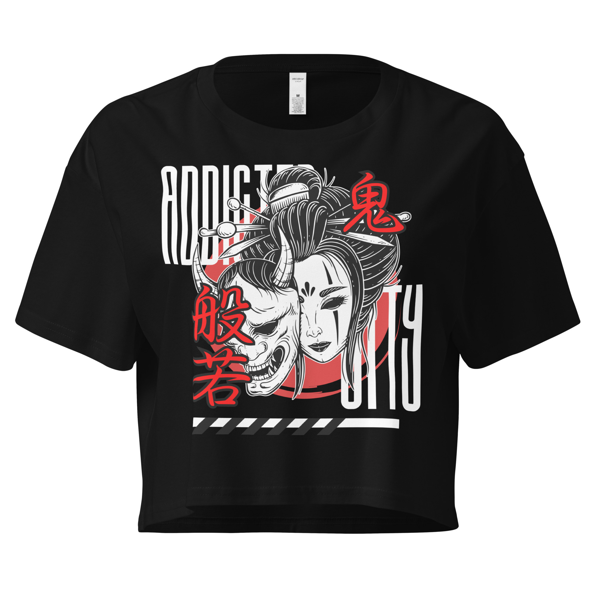 Keywords: Japanese couple crop top, Japanese graphic t-shirt, floral graphic crop top, cultural crop top, symbolic crop top, Japanese art shirt, traditional Japanese design, floral t-shirt, nature-inspired crop top, women’s graphic crop top, trendy crop top, cultural fashion, Japanese symbols shirt, chic crop top.