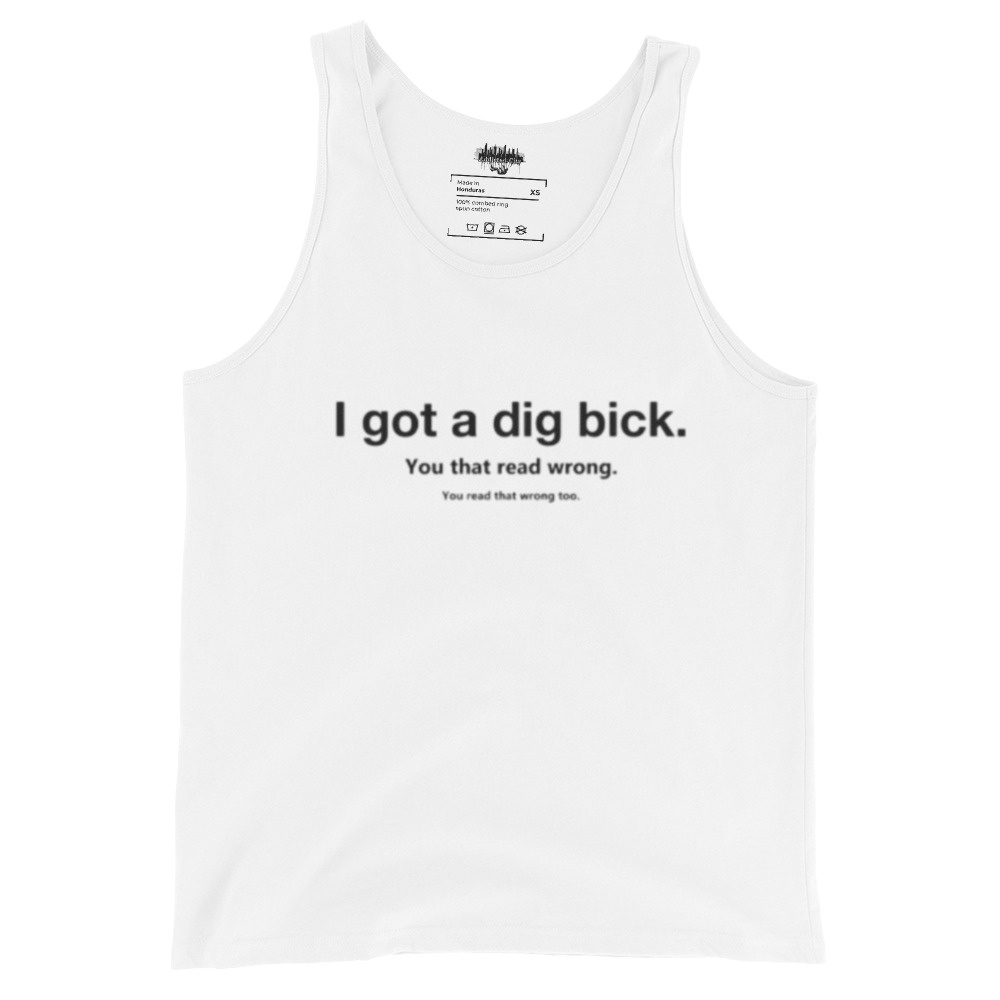 Add some humor to your wardrobe with the Addicted City Men’s Black Tank Top, featuring the funny and sarcastic phrase, “I got a dig bick: you read that wrong.” Made from premium, breathable fabric, this tank offers a comfortable and flexible fit, perfect for both workouts and casual wear. The playful design and bold message are sure to make you stand out and spark a laugh wherever you go. Whether you’re hitting the gym or just hanging out, this tank from Addicted City brings style and humor together in one bold piece.