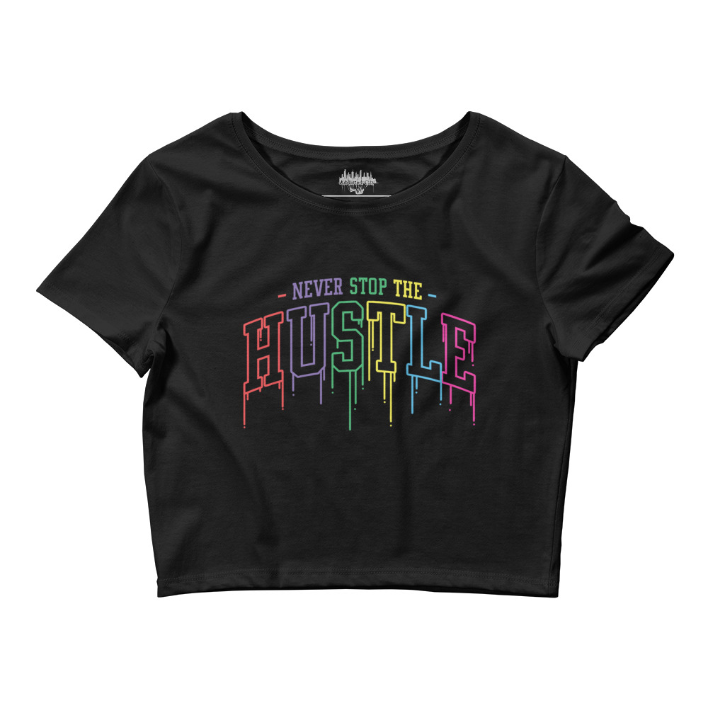 Keywords: Addicted City, “Never Stop the Hustle” crop top, empowering graphic tee, motivational crop top, casual women’s tee, bold statement shirt, workout crop top, hustle tee.