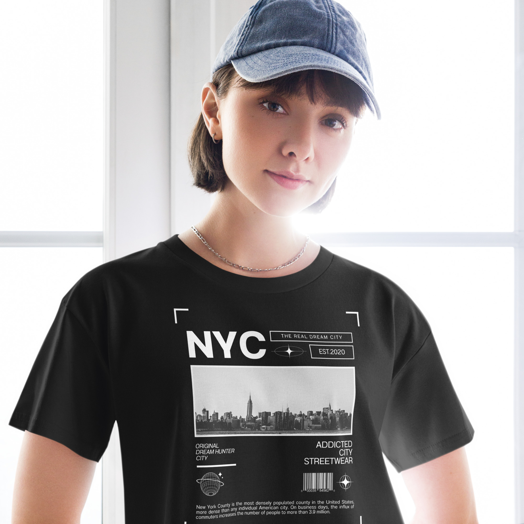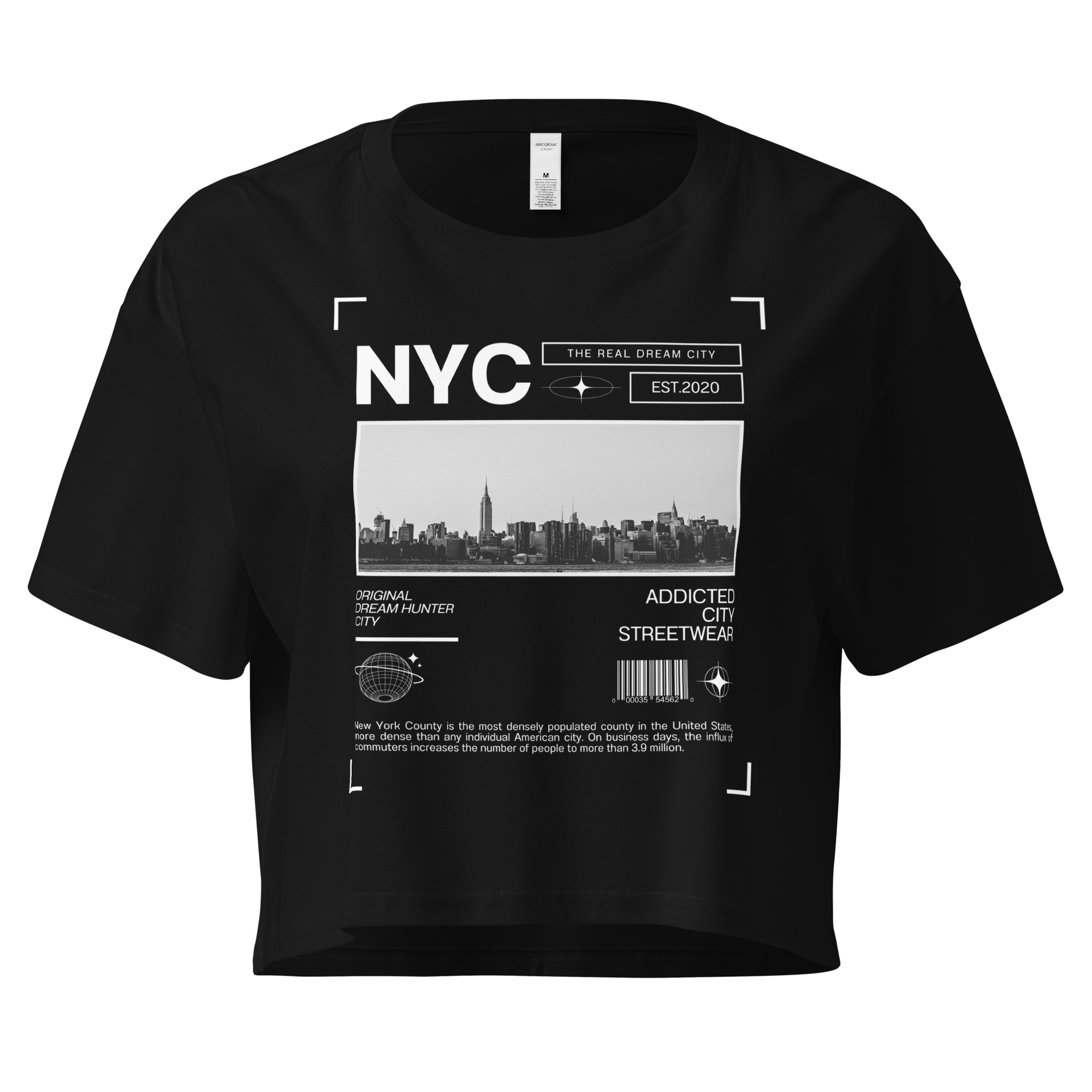 Keywords: New York crop top, NYC skyline crop top, New York City graphic tee, urban style crop top, iconic New York shirt, graphic crop top, city lover crop top, women’s graphic top, trendy crop top, streetwear fashion, Big Apple crop top, New York pride, city skyline top.