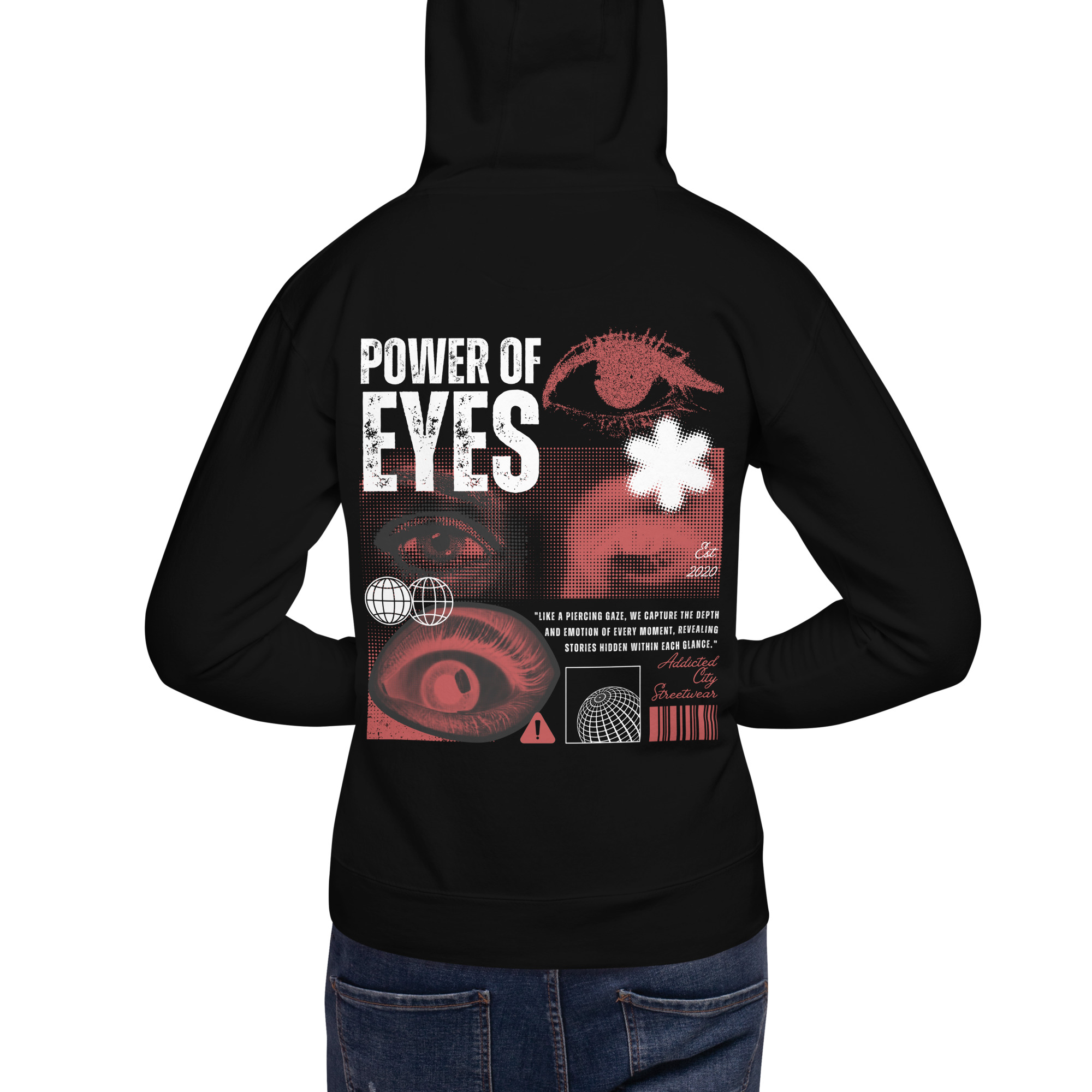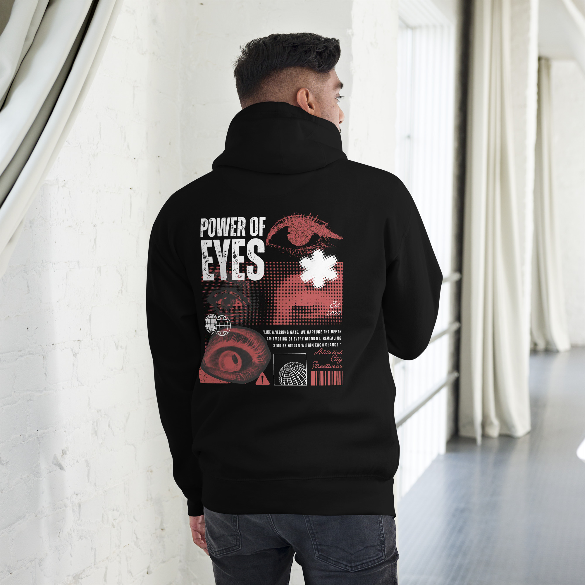 Power of Eyes hoodie, graphic hoodie, empowering hoodie, modern graphic sweatshirt, streetwear hoodie, unisex hoodie, inspirational hoodie, bold typography hoodie, comfortable graphic hoodie, stylish hoodie for men and women, casual hoodie with message, trendy hoodie, perception hoodie, urban fashion hoodie, vision and insight hoodie, motivational hoodie.
