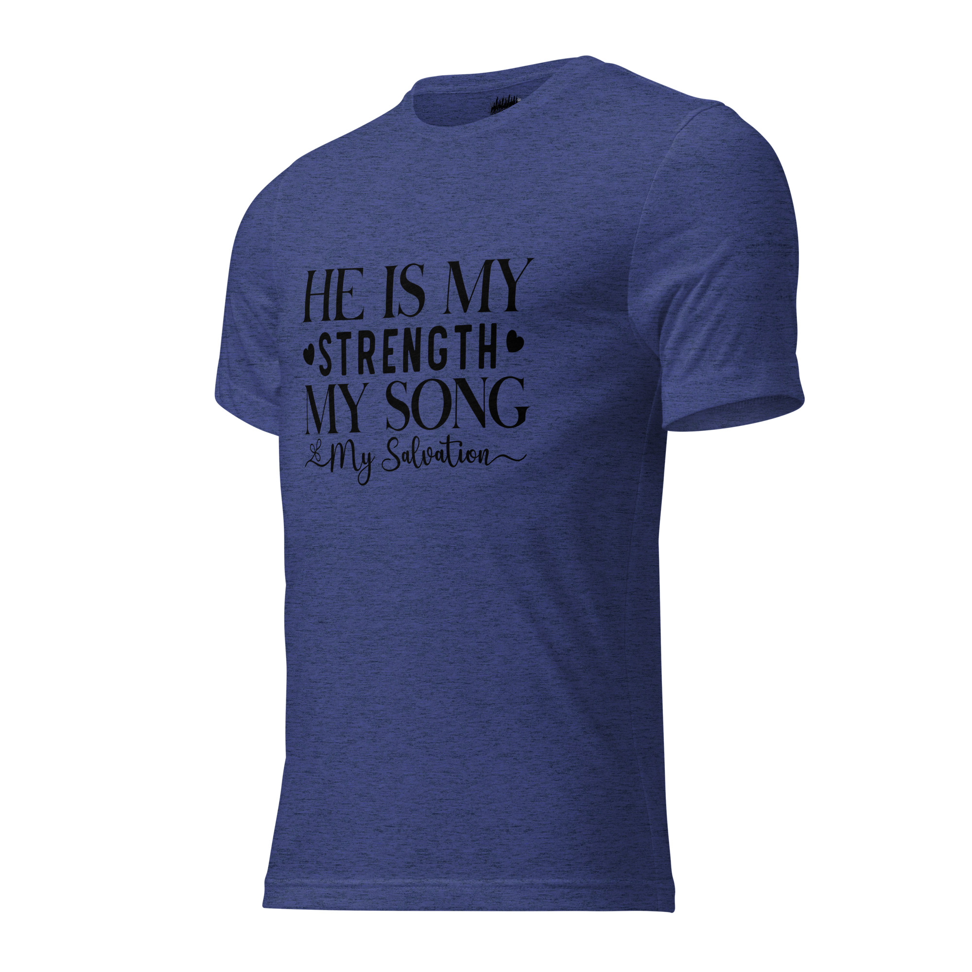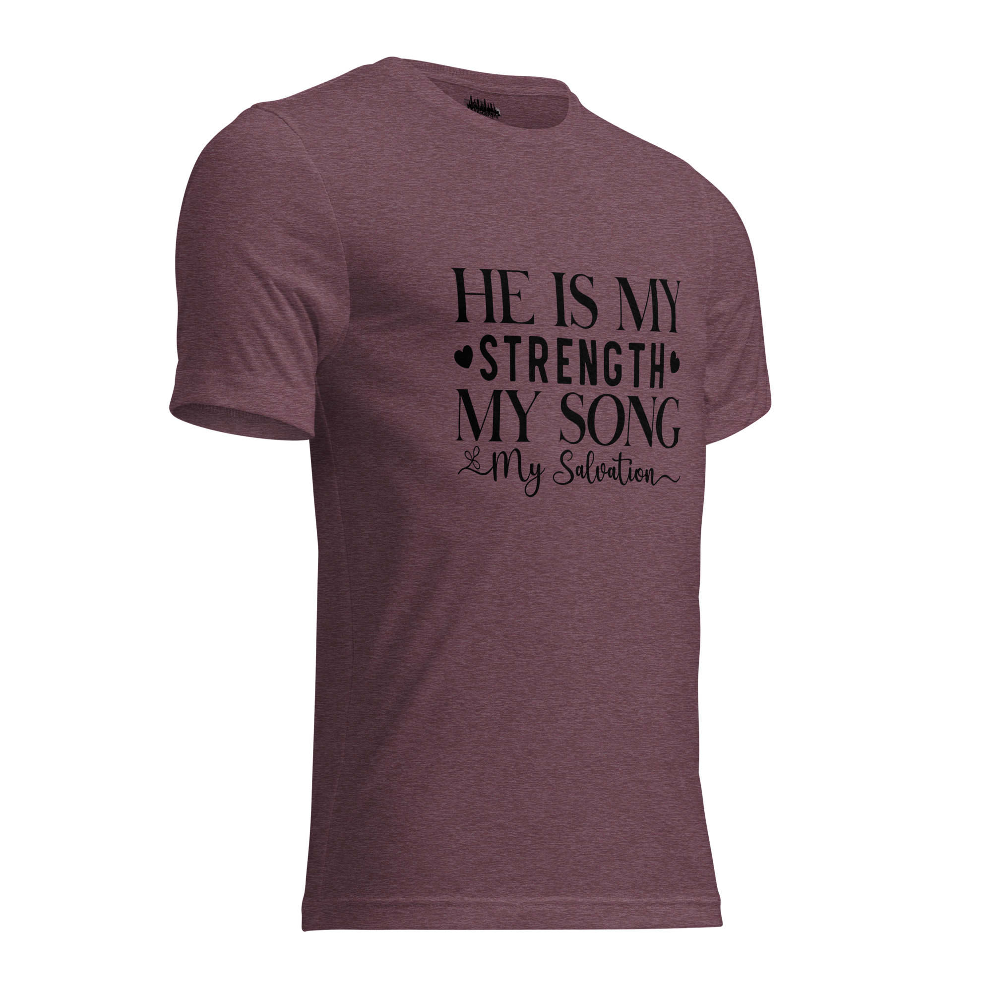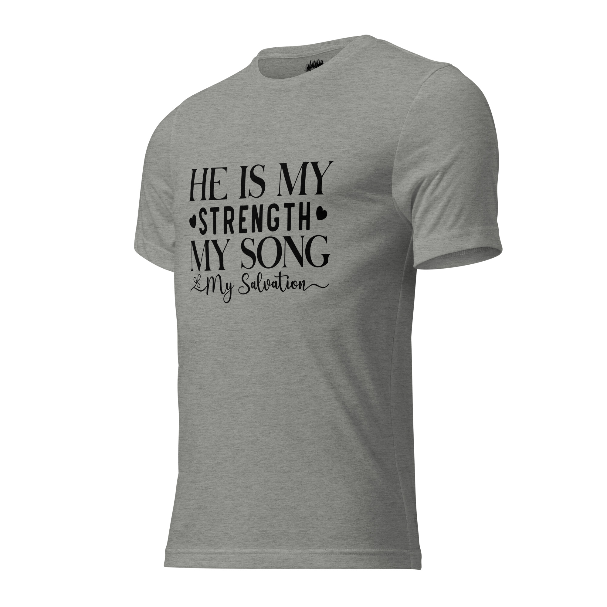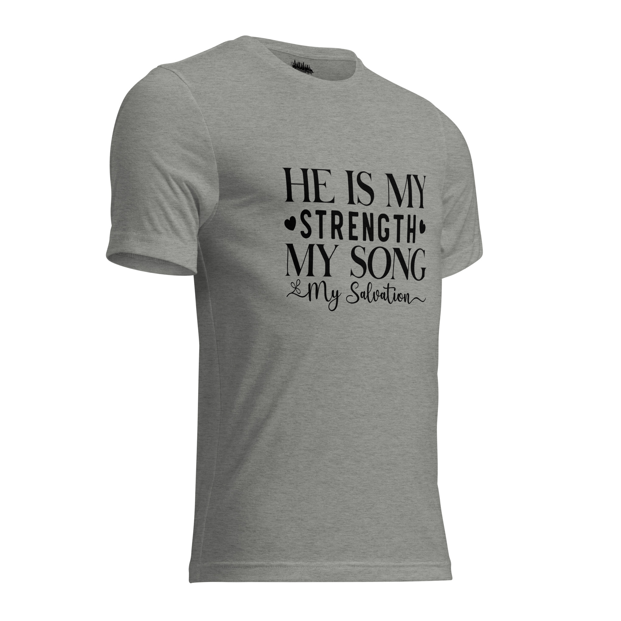 Keywords: He is my strength shirt, Addicted City apparel, faith-based shirt, inspirational T-shirt, salvation shirt, Christian graphic tee, motivational clothing, religious shirt.