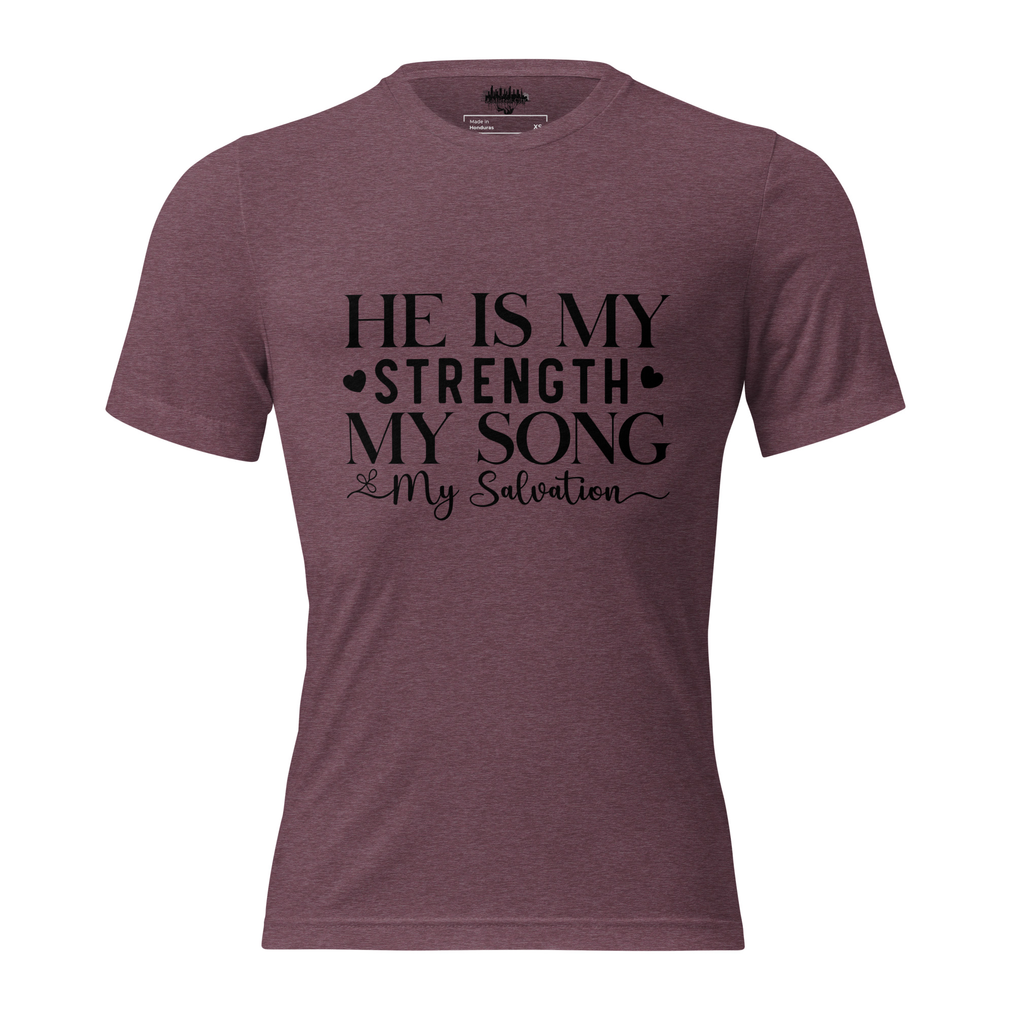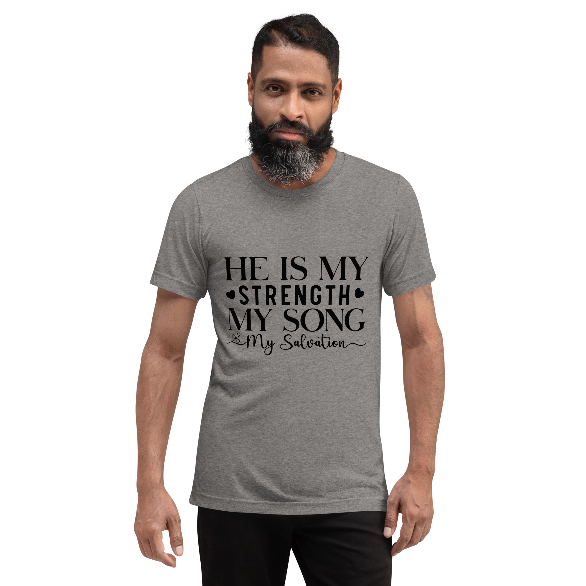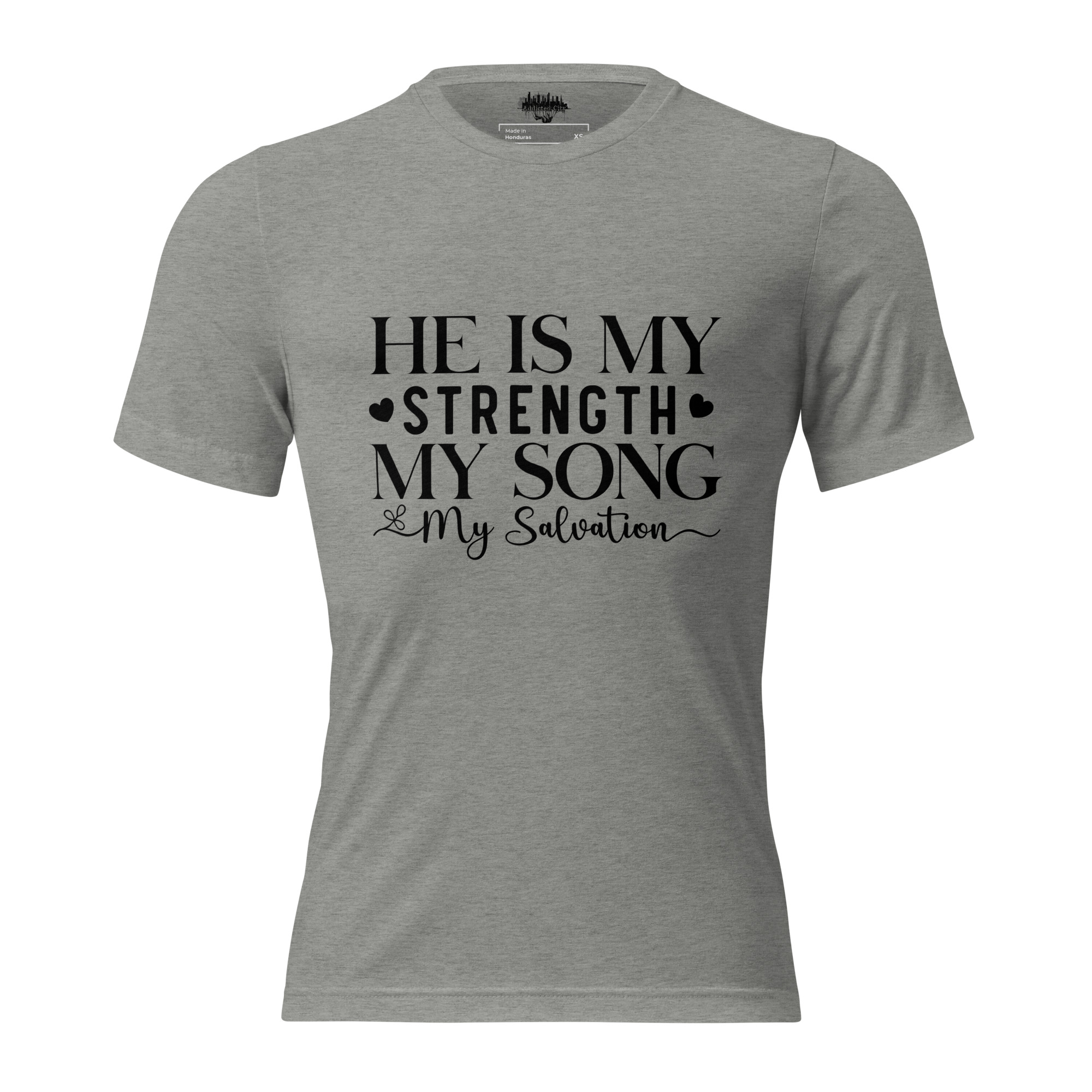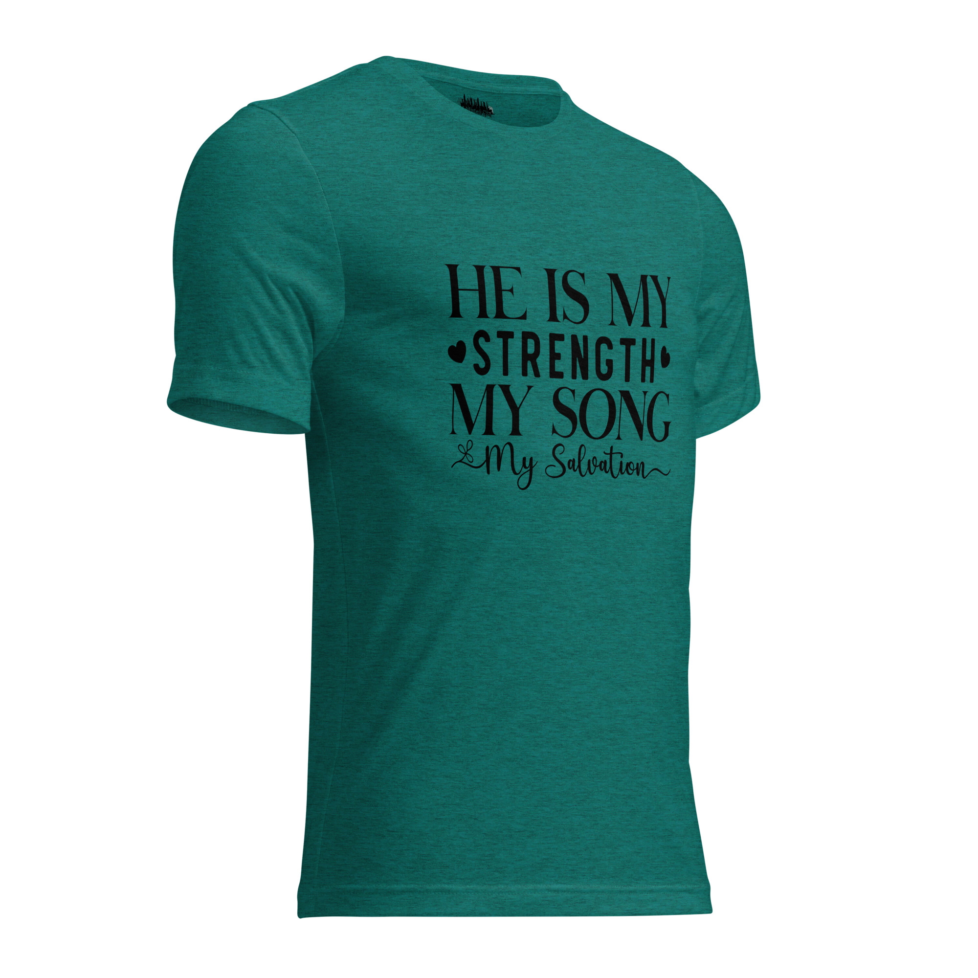 Keywords: He is my strength shirt, Addicted City apparel, faith-based shirt, inspirational T-shirt, salvation shirt, Christian graphic tee, motivational clothing, religious shirt.