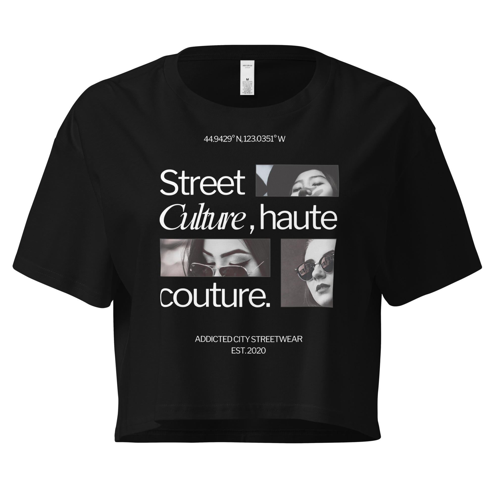 Keywords: Street Culture crop top, haute couture crop top, urban streetwear, luxury streetwear, graphic crop top, fashion-forward crop top, trendy graphic tee, women’s crop top, street style fashion, modern crop top, high fashion streetwear, casual chic crop top, bold graphic top.