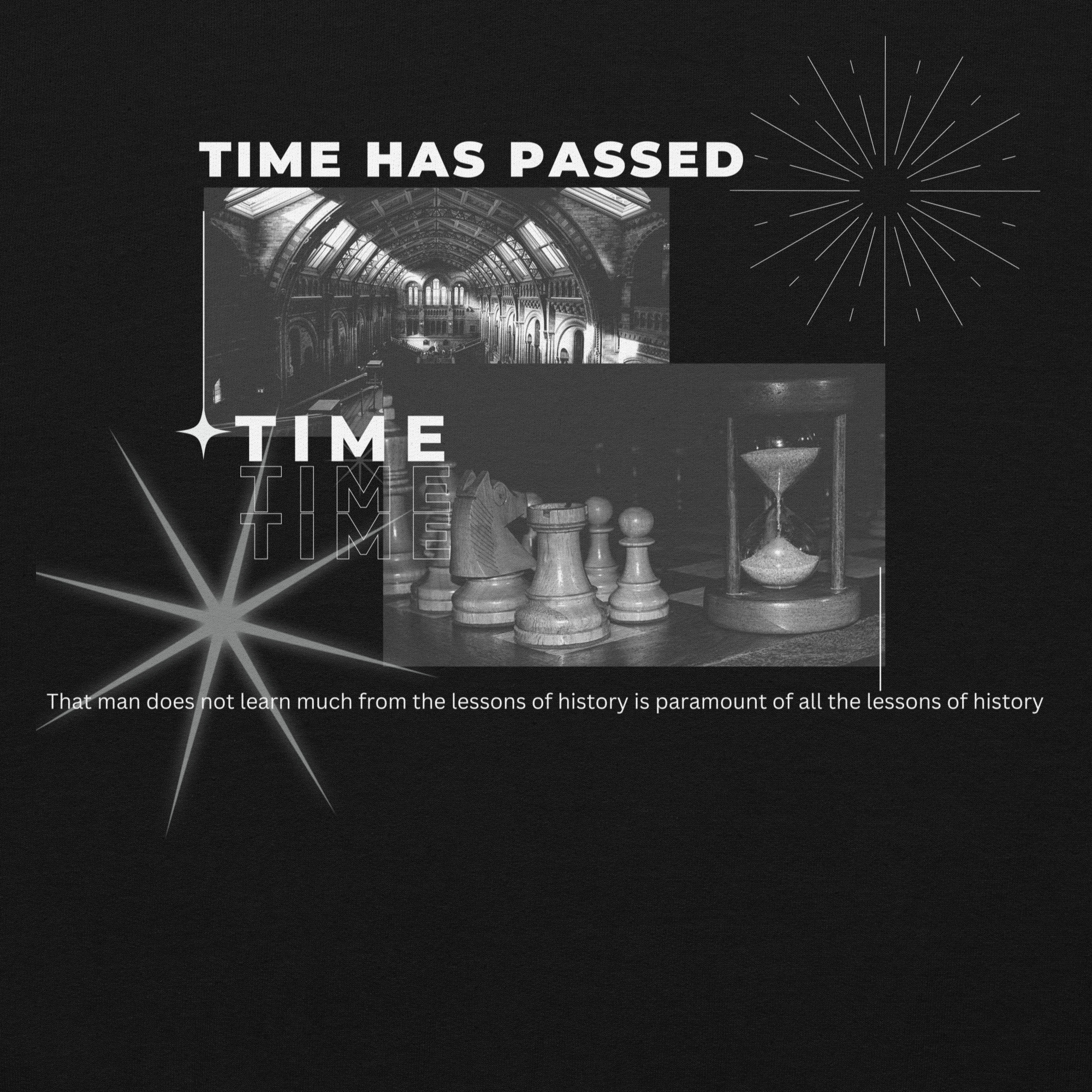 Keywords: Time Has Passed hoodie, reflective hoodie, inspirational hoodie, philosophical hoodie, time-themed hoodie, minimalist hoodie, meaningful graphic hoodie, custom hoodie, journey hoodie, timeless hoodie, casual hoodie for reflection.