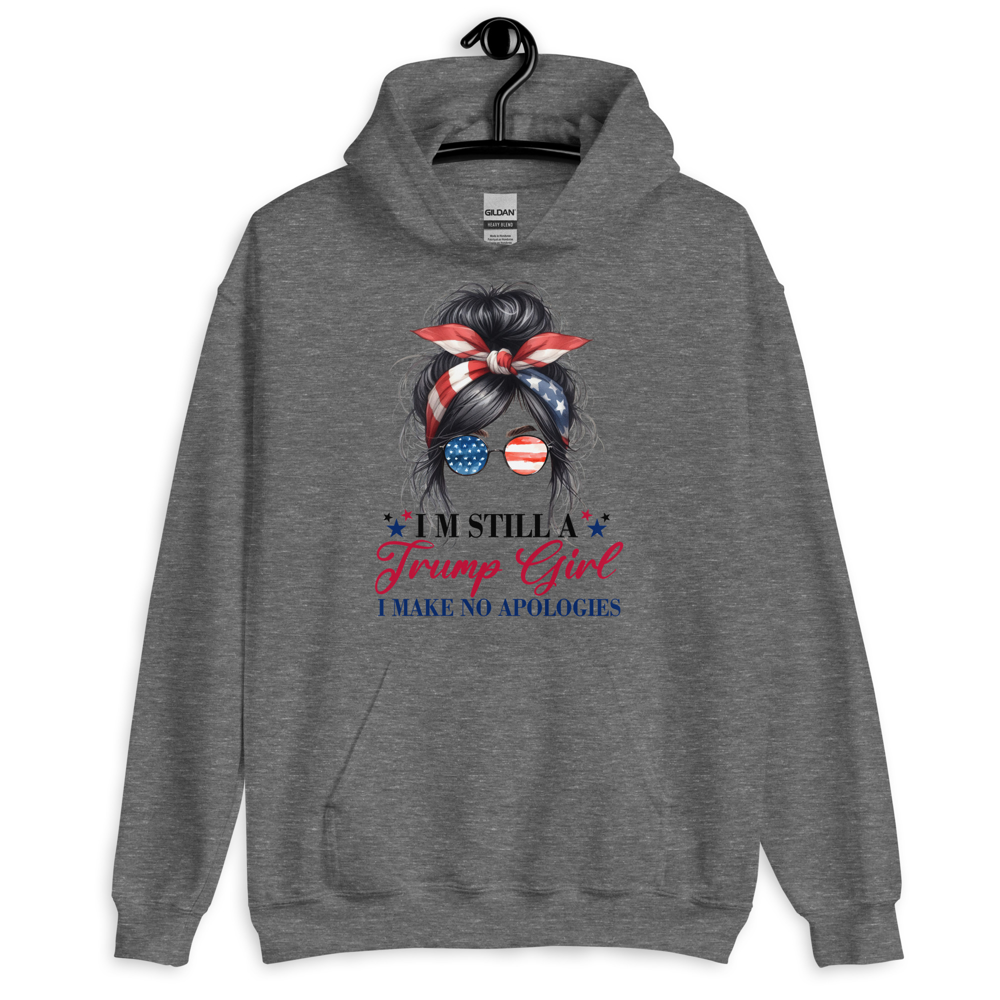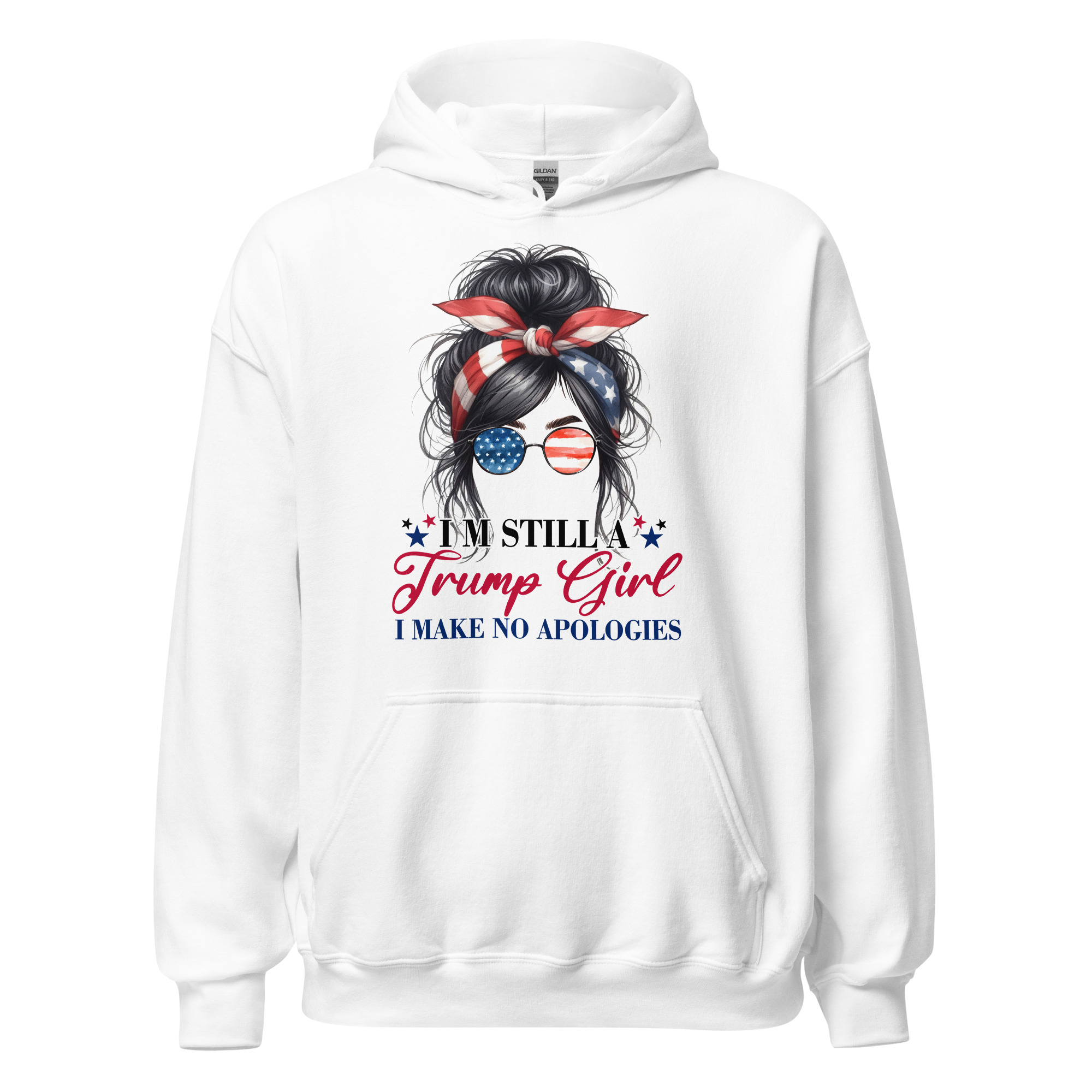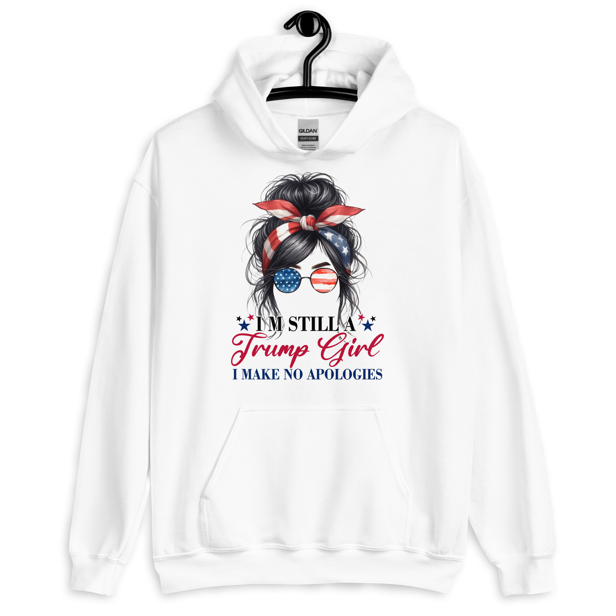 Show your support and stand by your beliefs with the “I’m Still a Trump Girl, I Make No Apologies” Hoodie by Addicted City. This bold black hoodie features the unapologetic statement “I’m Still a Trump Girl, I Make No Apologies” in eye-catching lettering, perfect for those who proudly express their political stance. Made from a soft, high-quality cotton blend, it offers warmth and comfort for all-day wear. With a classic fit, adjustable hood, and front pocket, this hoodie is ideal for showing your support in style.