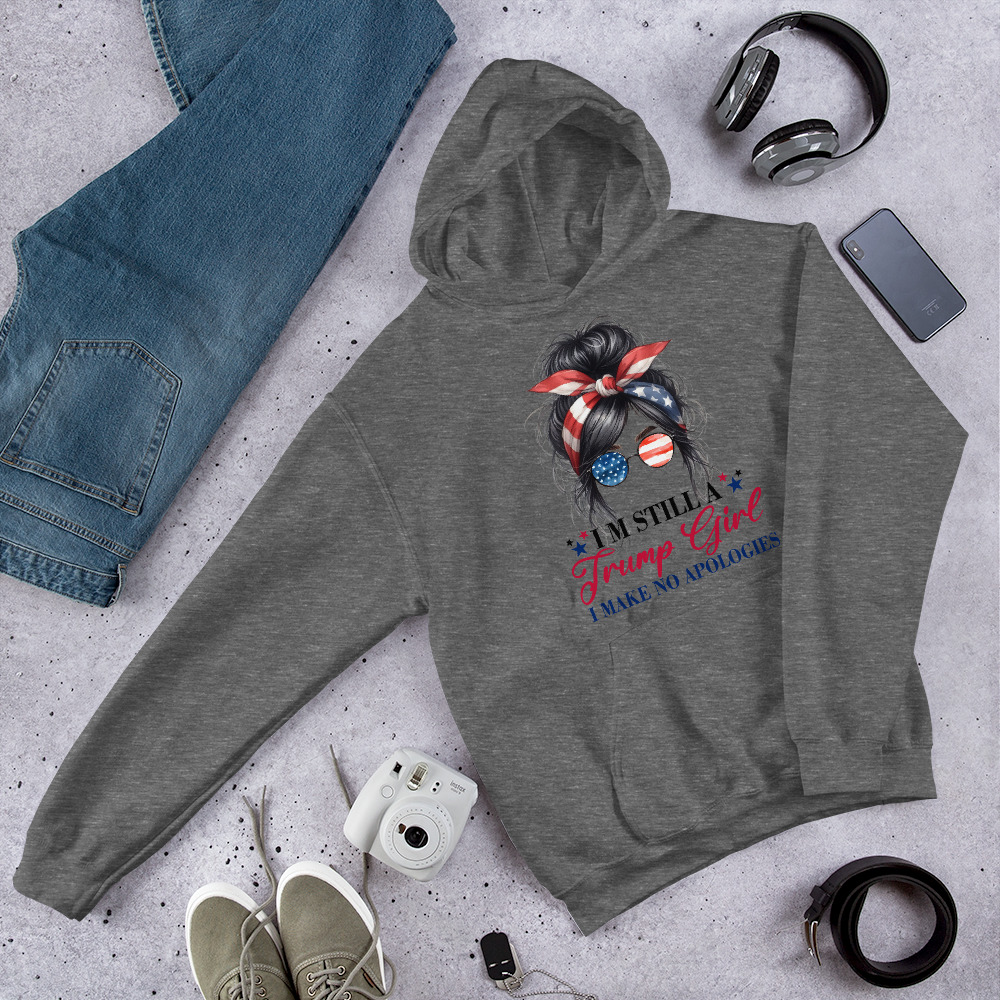 Keywords: Trump Girl hoodie, Addicted City apparel, political statement hoodie, conservative hoodie, bold graphic sweatshirt, streetwear, unapologetic hoodie, political support clothing.